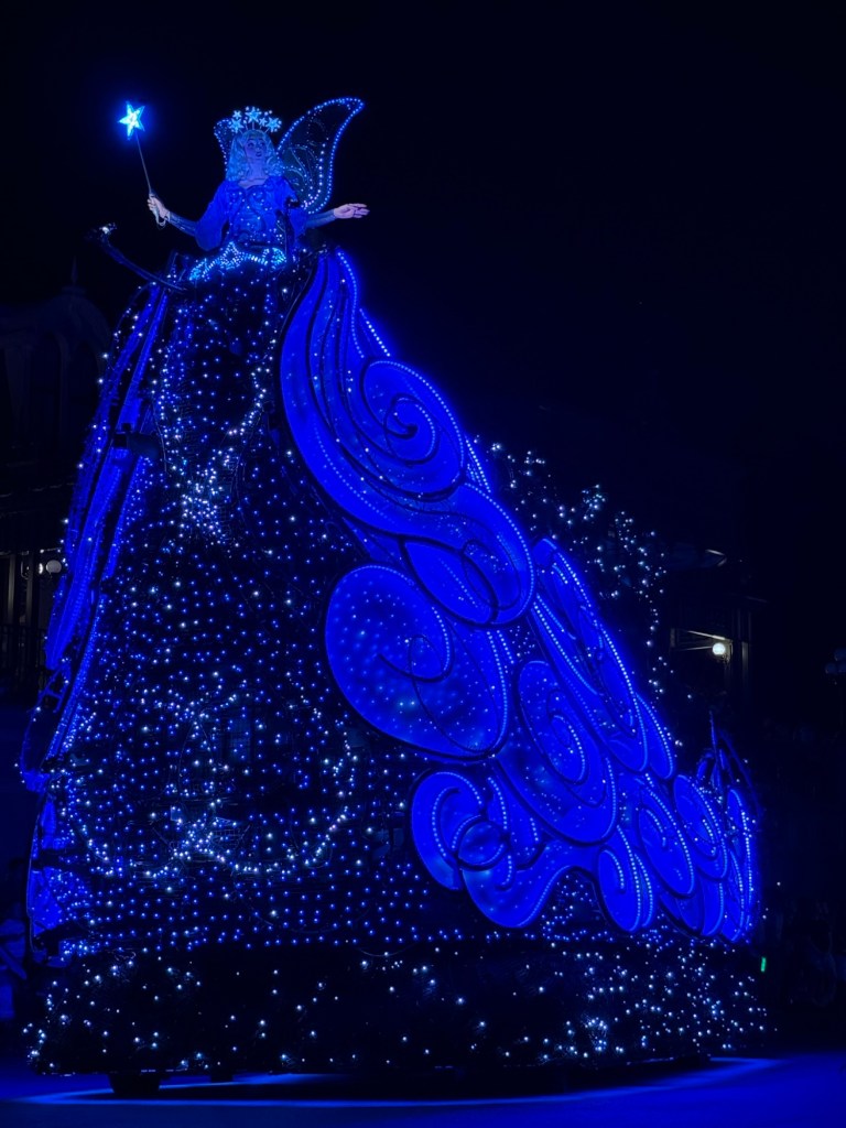 Disney’s newest nighttime parade is a glowing masterpiece. Starlight features dazzling floats, synchronized music, and characters like Tinker Bell, Moana, Elsa, Coco and Mirabel—plus the parade kicks off with the rarely seen Blue Fairy from Pinocchio.