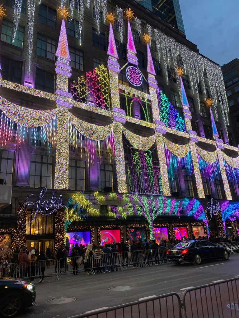 - Tip: Head out early to grab those magical, low-crowd photos — the Rockefeller tree lights turn on at 5 a.m.! If you want to see the Saks Fifth Avenue light show (and snag beautiful golden-hour shots), plan to arrive around 4:00 p.m. as the sun is setting, and enter from the Fifth Avenue side. The first Saks show kicks off right at 5:00 p.m., and it’s pure holiday magic.