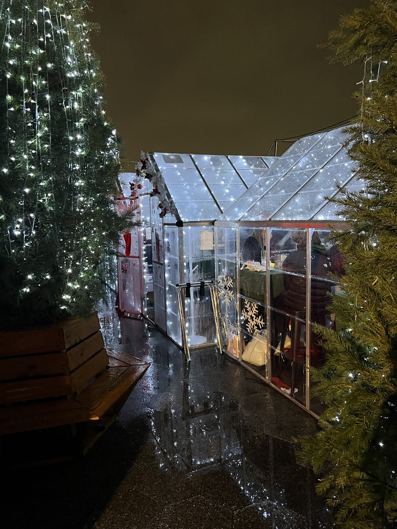 - Reservations recommended; creative cocktails in a winter wonderland setting.